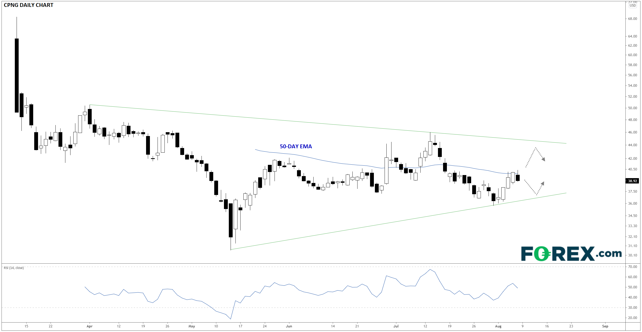技术面看,Coupang相对较短的交投历史坎坷不断。IPO后该股暴跌,过去五个月横盘且波动区间不断收缩。股价目前交投于该区间的中轨,即40.00附近,短线技术面没有明确的倾向。但是,如果财报令人失望,可能推动股价考验37.00附近的支撑位。而若财报强劲,可望推动股价上攻形成中的对称三角形的顶部,目前落在44.00附近。