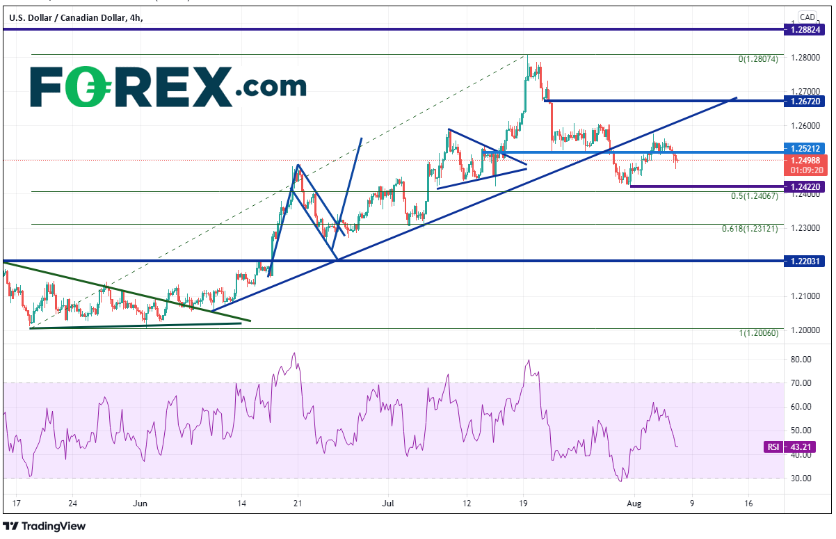 美元/加元正处于6月1日高点至7月19日低点下行之50%回档上方50个点位置。将于周五上午公布的美国非农和加拿大就业数据应可帮助确定美元/加元下步走向。