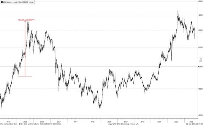 2011年,黄金价格上涨43%,原因详见下文的第1点。该部分内容也将阐述金价是否可能重现2011年“盛景”。