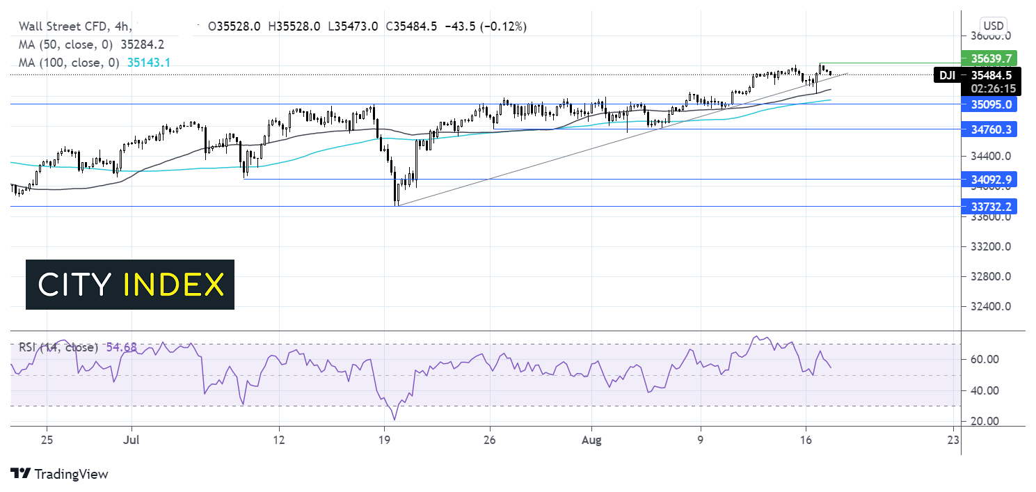 道琼斯指数自7月低点33737点反弹后一路稳步走高,上一交易日创下35630点历史新高。