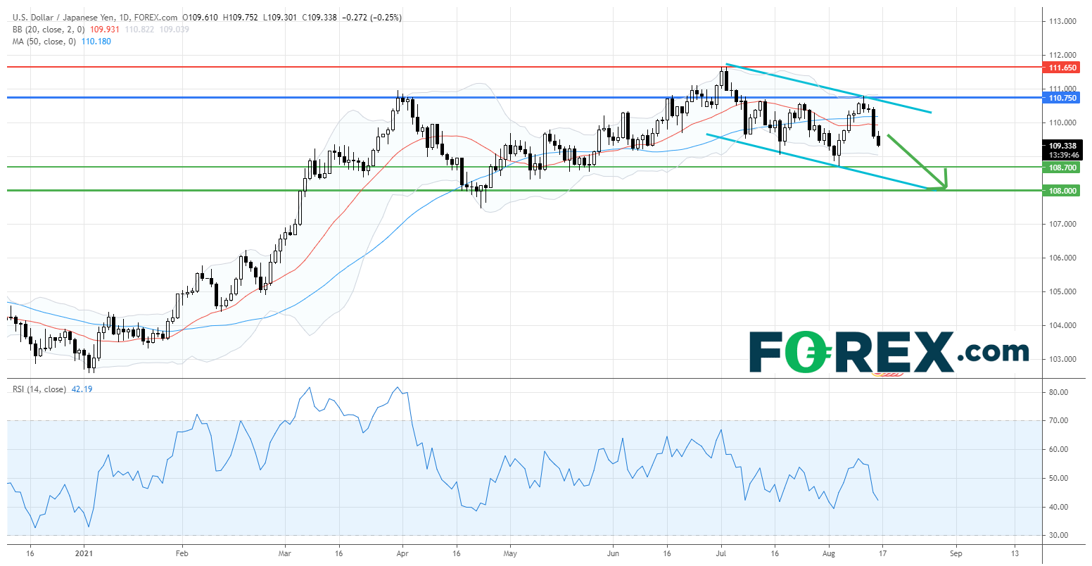 只要看跌的主要阻力 (止损) 位110.75守在上方,美元/日元料回落至下行目标108.70和108.00 (下降通道底部)。