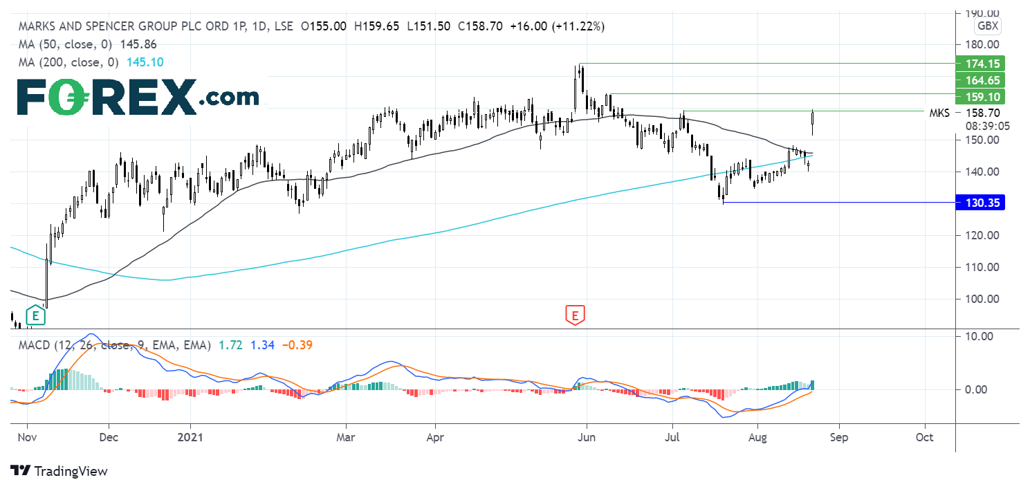 在去年年底和2021年初稳步上涨之后,玛莎股价于174便士遇阻,这是6月初触及的疫情以来最高水平。随后,股价探入5个月低点130便士。