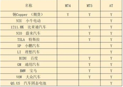 在电动车领域,嘉盛平台上可供交易的相关品种包括:小牛电动、比亚迪汽车、蔚来汽车、特斯拉、小鹏汽车、理想汽车、百度、通用汽车、宝马、大众汽车、汽车固态电池。