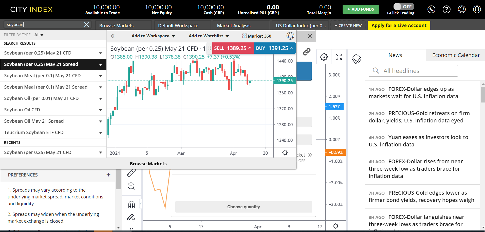 如今,大豆也作为一种农产品进行交易。City Index提供大豆期货的价格。