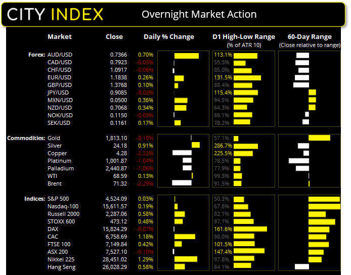 澳新货币(澳元和纽元)是隔夜最强主要货币。GDP报告没有像市场担心地那样严重萎缩,为澳元带来买盘;纽元则因为封锁管控措施放松而上涨,没有受到昨天新冠病例数增加的困扰。