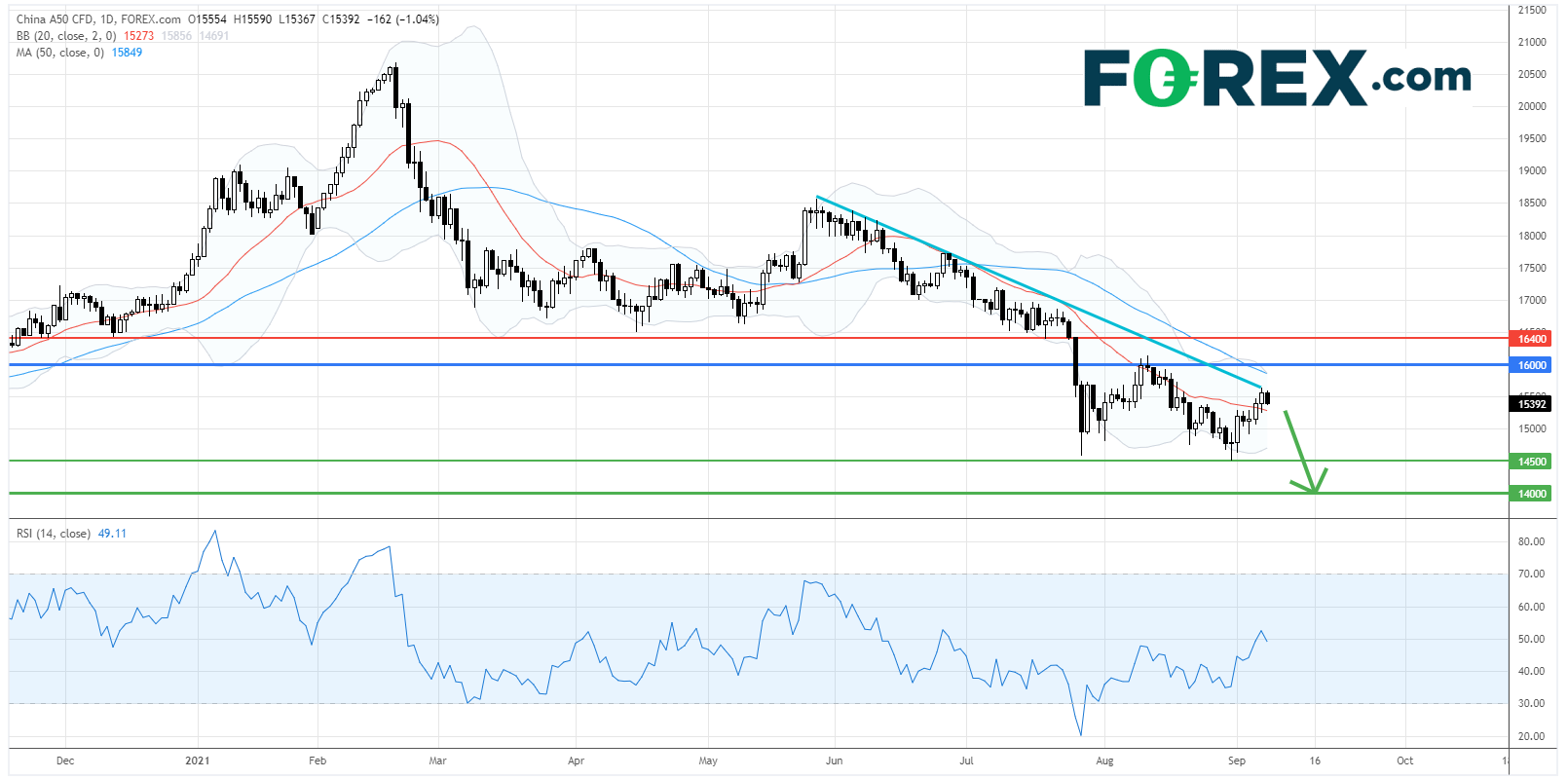 中国A50指数CFD :主要阻力位16,000點仍未上破
