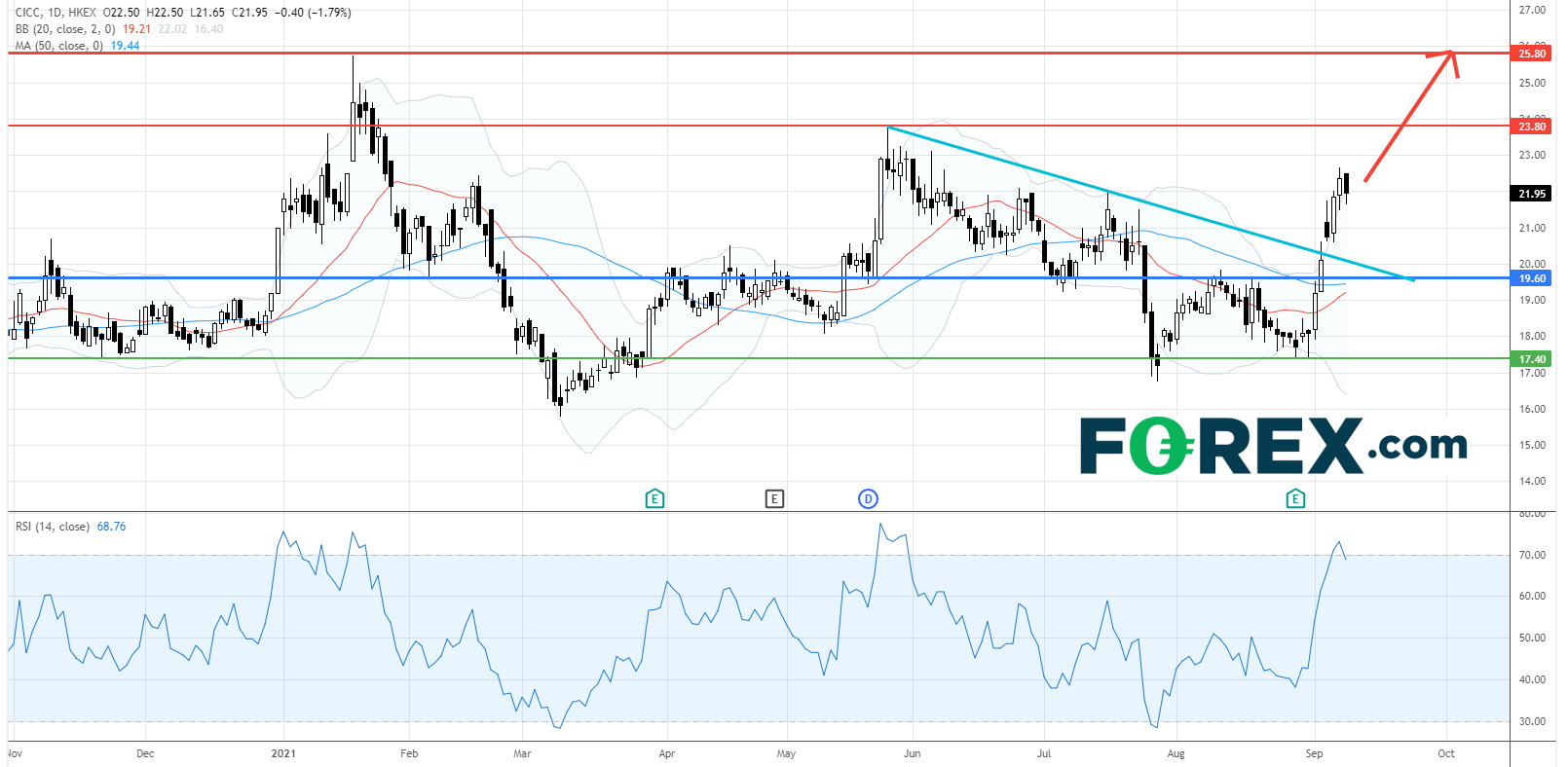 目前,技术走势维持看涨并应以22.00港元和23.40港元作上行目标。主要支持位则为于19.10港元。