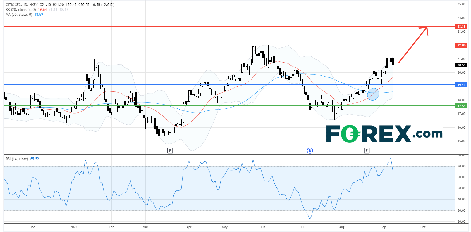 中信证劵(6030.HK):走势看涨,目标23.35港元