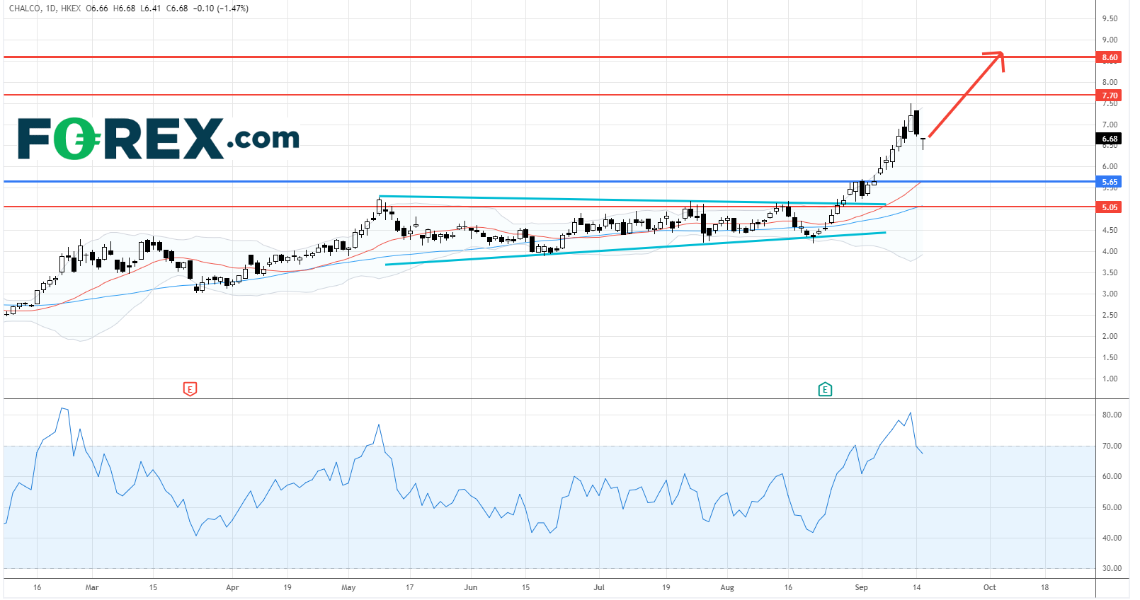 只要主要支持(止损)位5.65港元守在下方,股价料将挑战下一道阻力位7.70港元和8.60港元。
