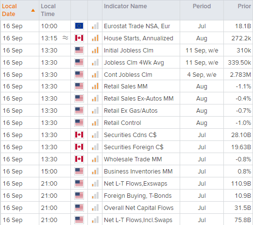 英国夏令时 13:30,美国将公布一组数据,包括就业报告、企业信心和零售销售。失业金申请人数目前处于疫情后期低点且前有弱于预期的通胀数据,如果意外增加,可能进一步惊吓美元多头。如果得到糟糕零售销售报告的助力,时段内美元可能下跌,而黄金、白银和铜可能一定程度看涨。现在直至下周FOMC会议召开之前这段时间揭晓的任何数据,基本上都可能导致美元起伏不定。