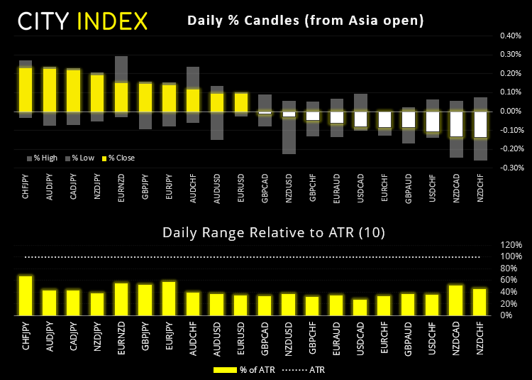 ASX 200指数受能源股拖累,即将收于20天EMA均线下方,构筑看跌吞没K线。ASX成为隔夜表现最差股指之一,而中国、日本和韩国股市均有望收高。