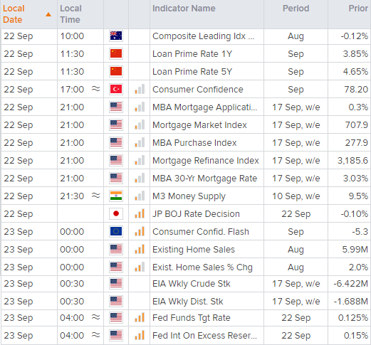 市场重点关注将于今天结束的联邦公开市场委员会(FOMC)会议,美联储将于英国夏令时19:00公布官方现金利率(预计保持不变)。杰罗姆·鲍威尔将于19:30举行新闻发布会,交易员密切留意任何缩表相关线索(或确认)。有人认为,由于股市抛售(高达5%……),美联储可能会推迟宣布缩表,不过只要今天有只言片语提到联储正酝酿缩表,就表明他们极有可能在11月会议上正式官宣。