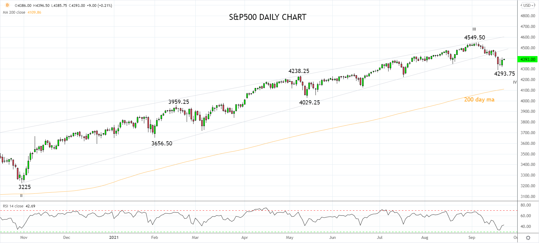 不过,标普500指数自9月初4549.50高点的回落被视为一次修正性回调。尽管隔夜反弹一定程度上表明修正已于本周低点4293.75画上句号,但这点还需进一步证据才能确认。