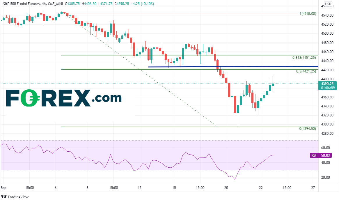 在恒大危机、美国债务上限等风险并未消退的环境中,美国股市或难以继续冲高,上档面临无数的阻力,其中包括刚刚过去的周末的跳空缺口、9月6日高点到周一低点行情的50%回档位,即4421.25附近,以及图表中没有显示的50天均线所在的4430,等等。下档支撑位在当天低点4321.25以及周一低点4293.25。