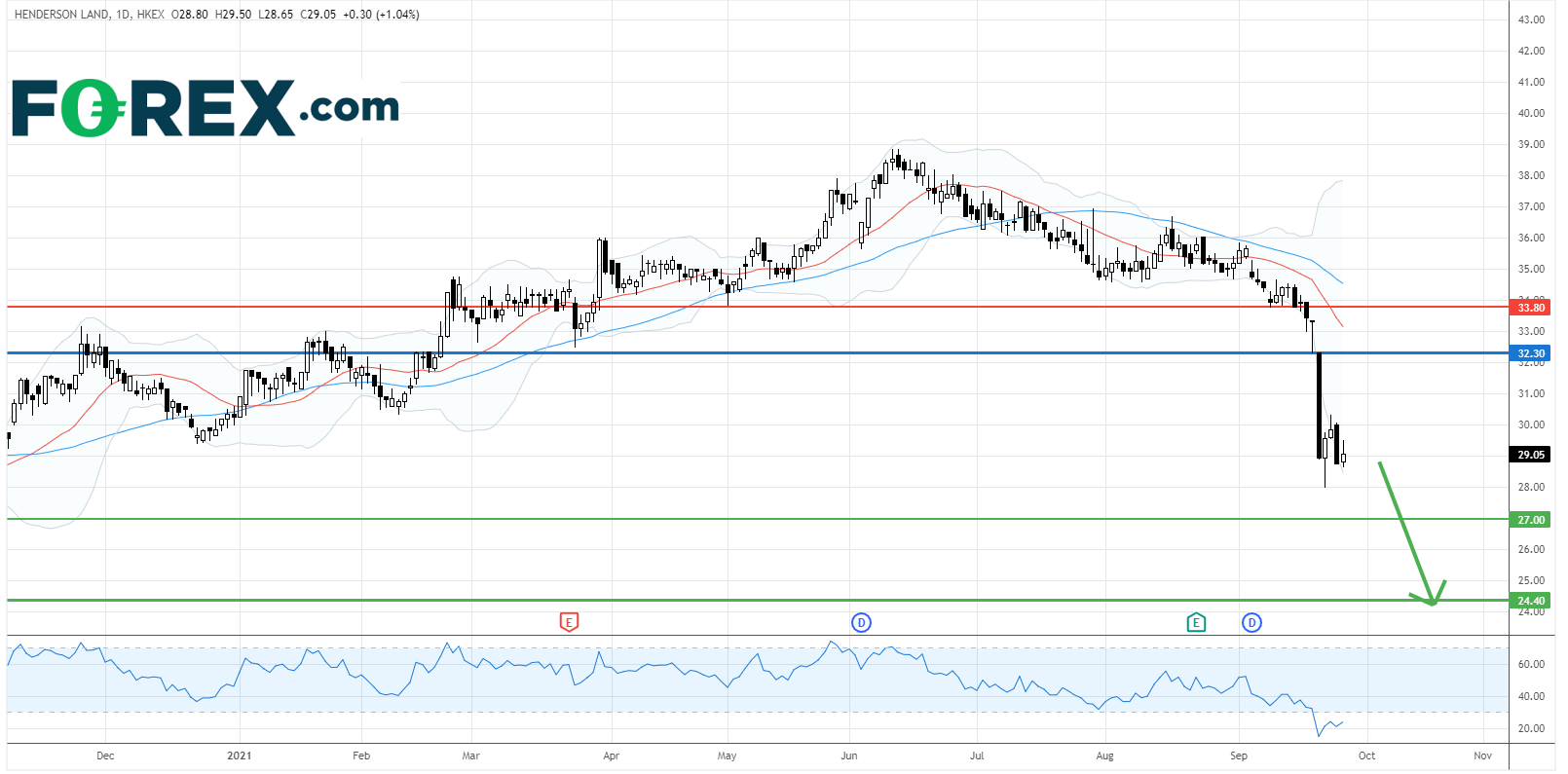 恒基地产 (12.HK) : 跌势仍强,料下滑至24.40港元