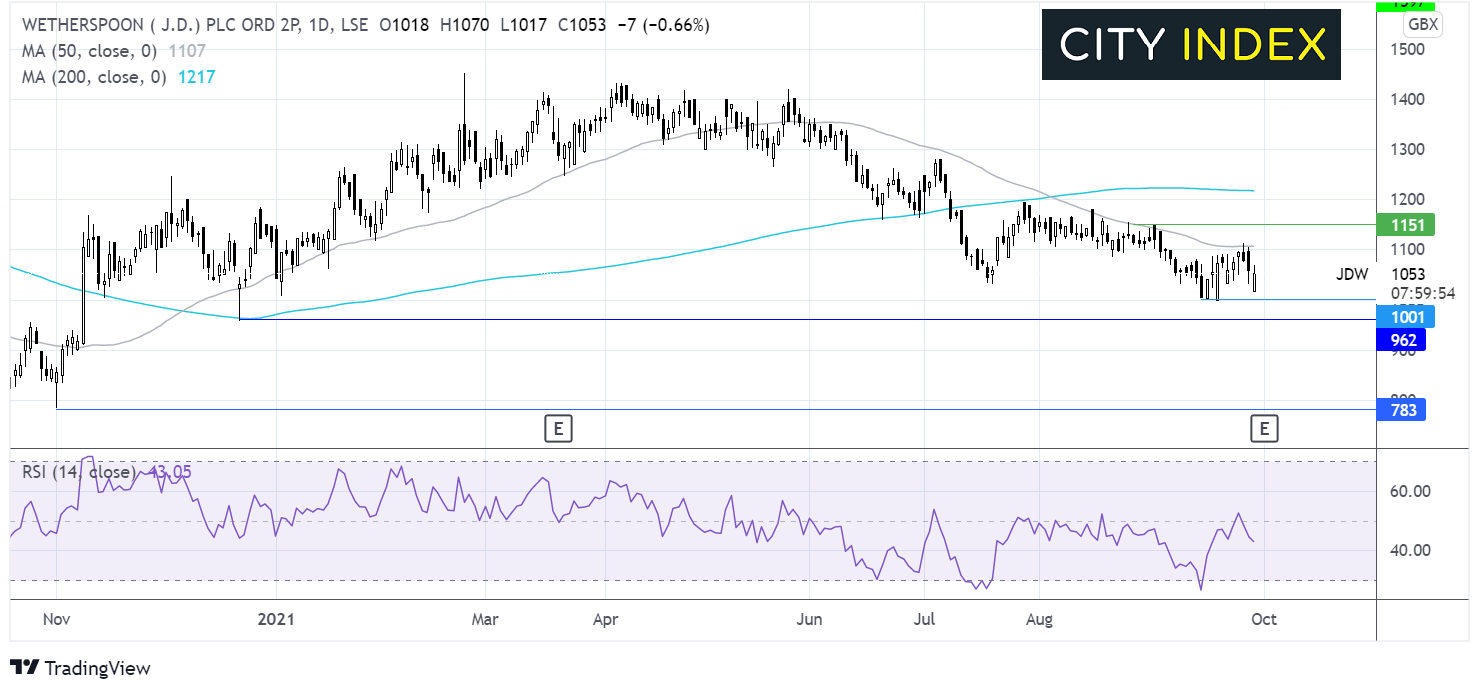 Wetherspoon股价仅收复疫情开始以来一半失地。覆盖Wetherspoon的11家券商认为该股仍有很大反弹潜力,平均评级为“买入”,目标价1379.0便士,这意味着当前股价有超过30%的上涨空间。