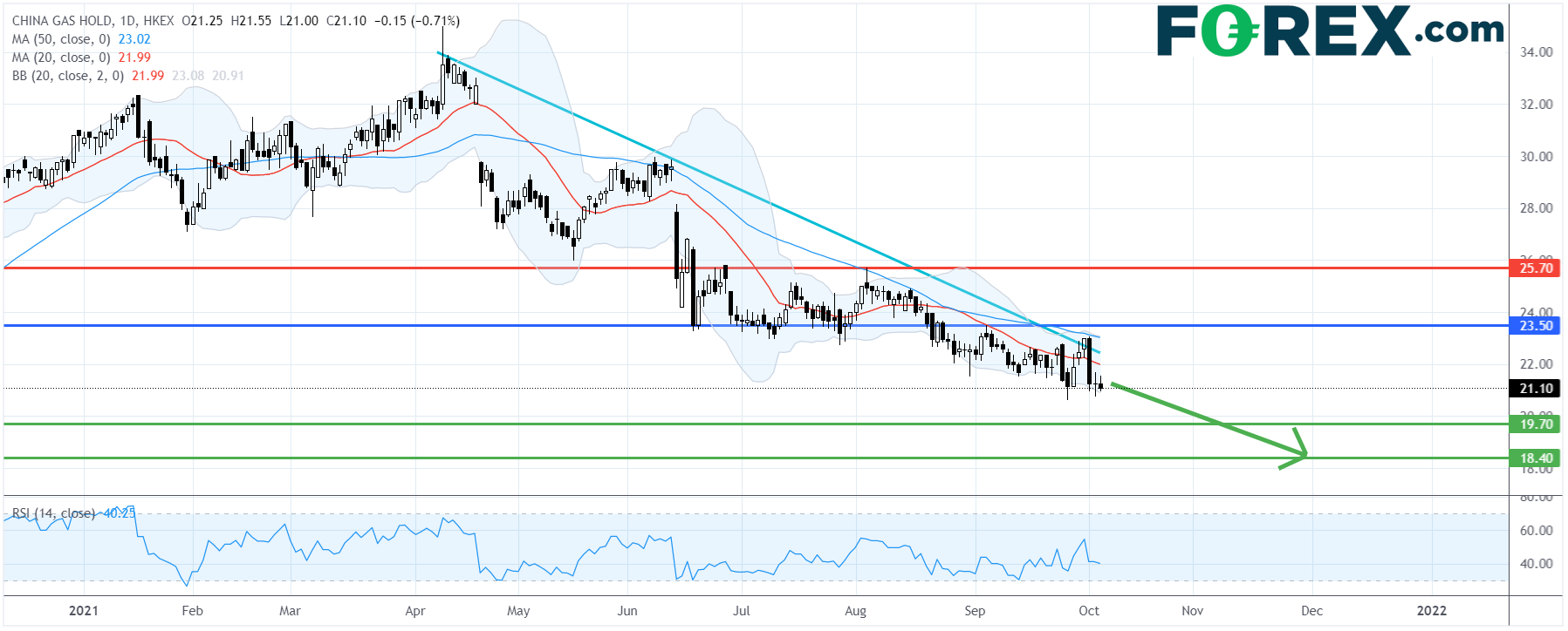 只要看跌的主要阻力 (止损) 位23.50港元不破,股价将持续面对压力。下行目标在19.70港元及18.40港元。