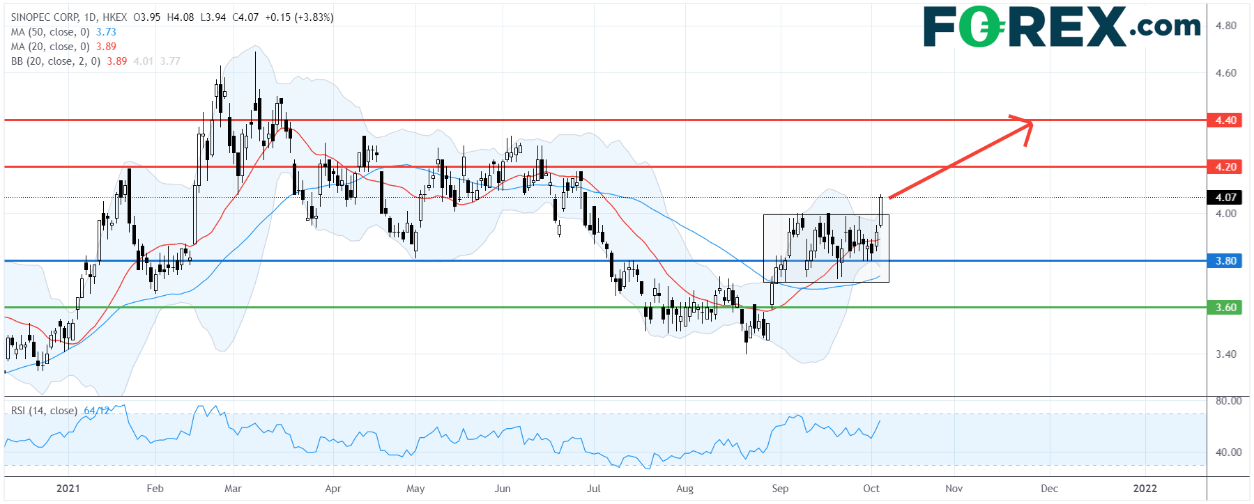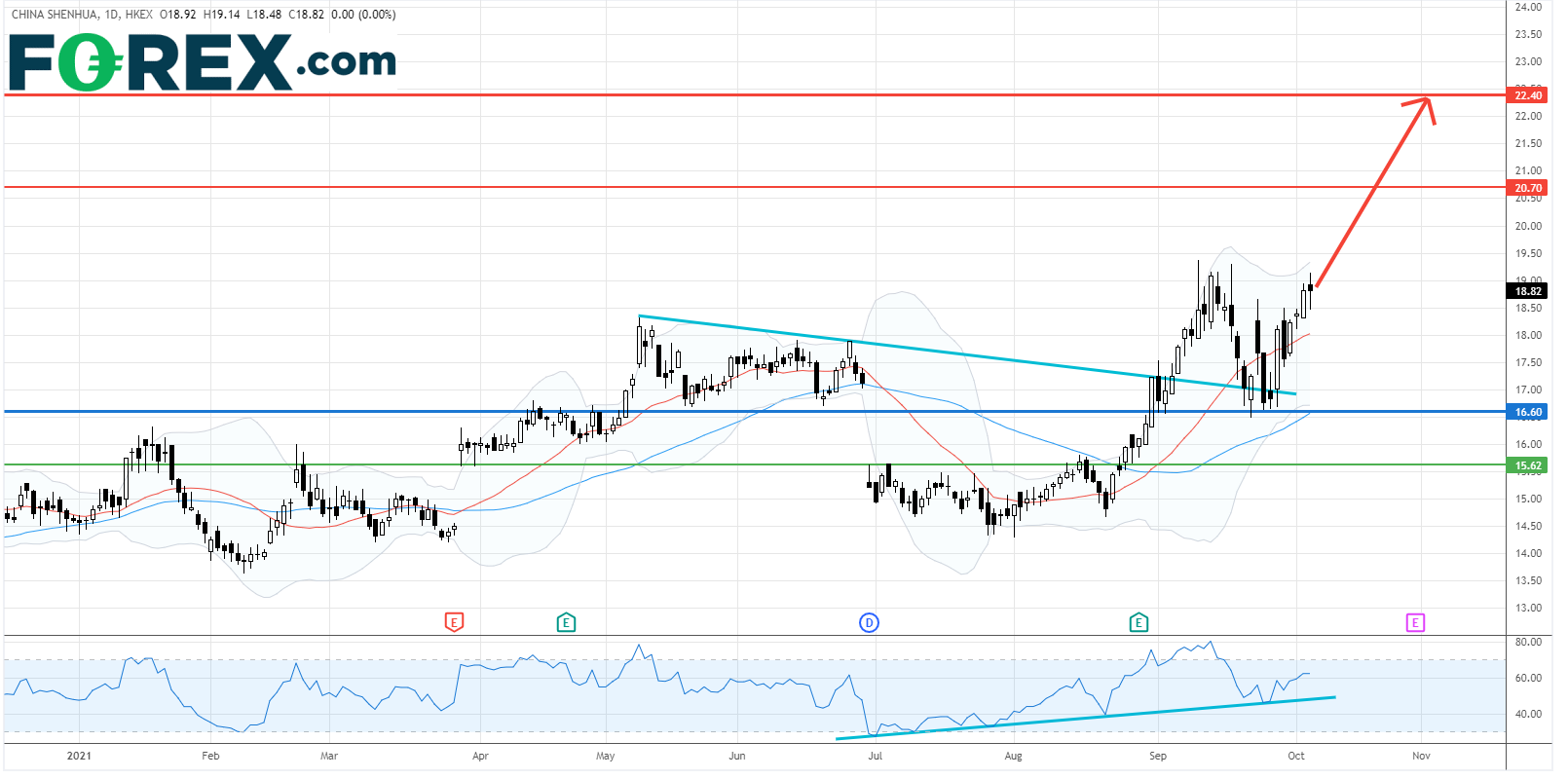 石油、煤炭价格持续走高, 看好港股 中石油 (857)、中石化 (386)、中国神华 (1088) ; 中国电力 (2380) 守住上涨裂口; 中国燃气 (384) 未见起色