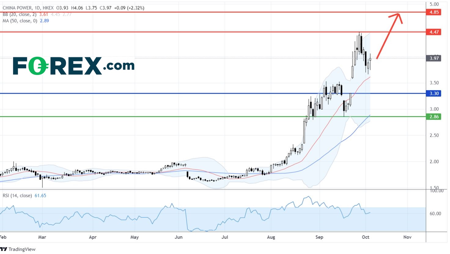 中国电力 (2380.HK) : 衝高後整固,顶头阻力位4.47港元