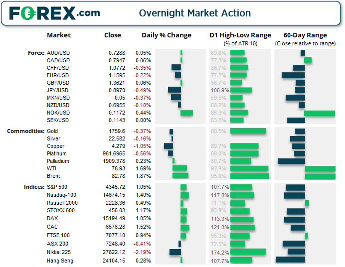 - 标普500指数上涨45.26点,涨幅1.06%,收在4,345.72