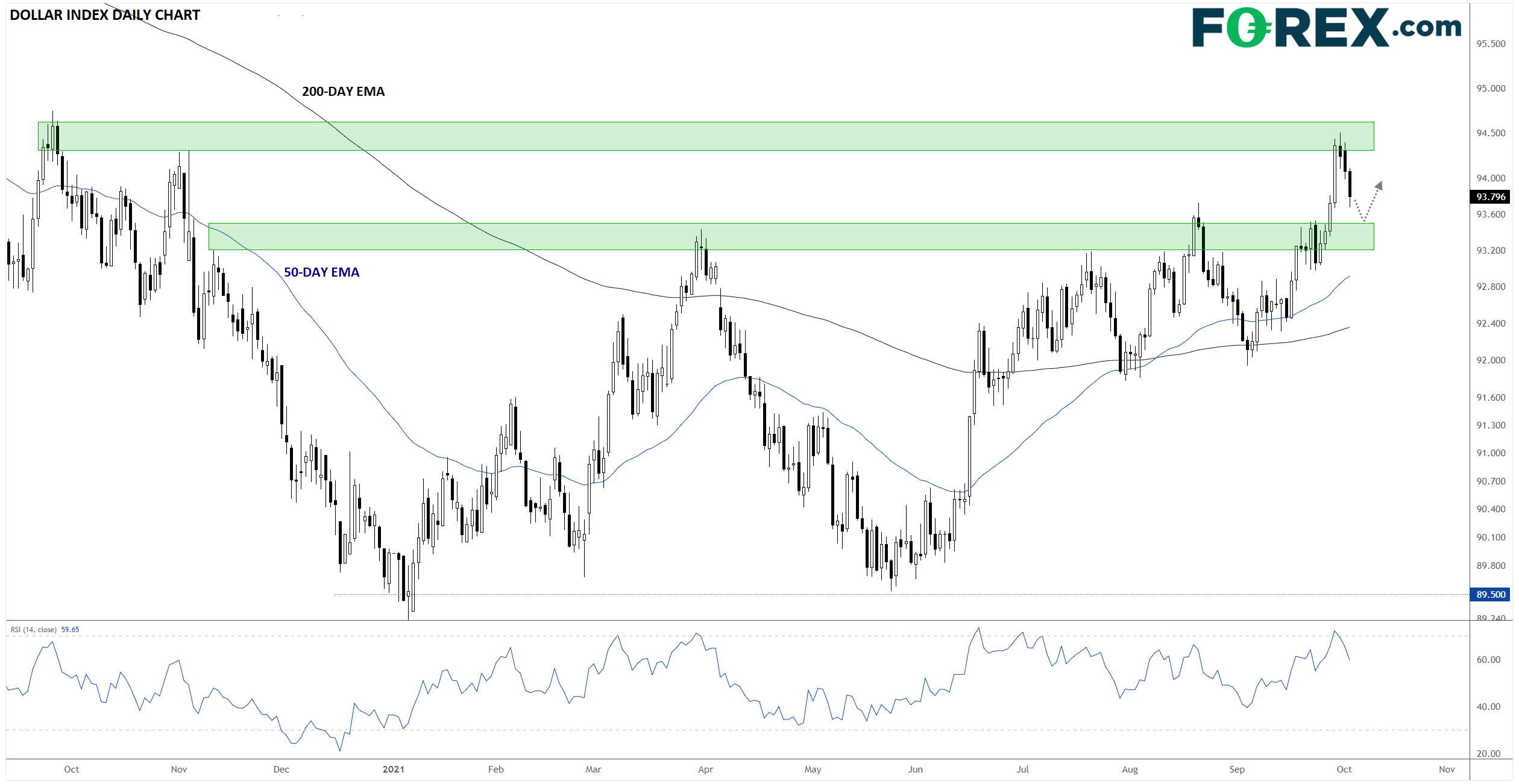 在平均时薪连续5个月至少上涨0.4%后,可能会推动一轮更为持久且没那么“短暂”的通胀,若落实,或让联储官员心烦意乱。这对美元指数来说是一个潜在看涨动态,本周伊始,美元指数自94.00附近阻力位回落,但仍处于清晰的上升趋势中,支撑落在当前水平略下方的93.00下部。