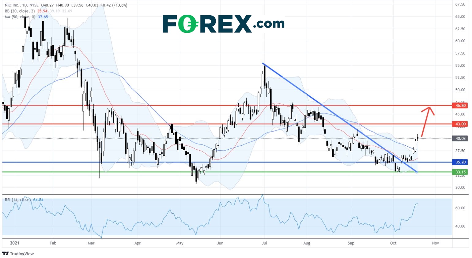 蔚来汽车 (NIO.US) : 升破下降线,上望40.80美元