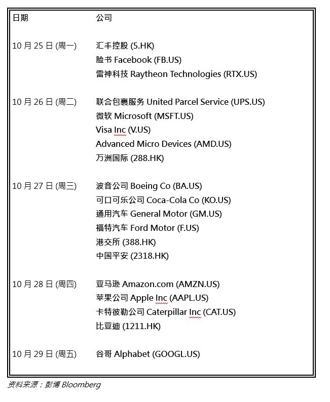 將於下周公布季度业绩的主要美國及香港上市公司: