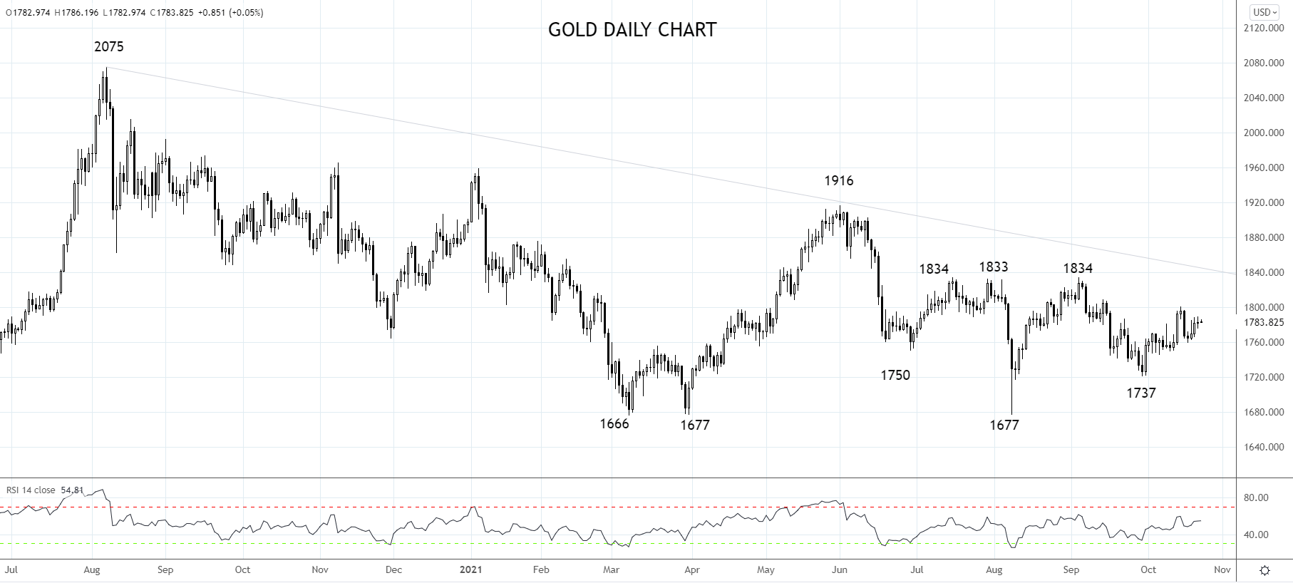 技术面来看,尽管若拿下阻力位1800美元将带来短线走高,但需要攻克1835/45美元(三顶和趋势通道) 关键阻力位以确认价格将展开更强劲反弹,向6月高点1916美元和2020年8月2075美元高点发出冲击。