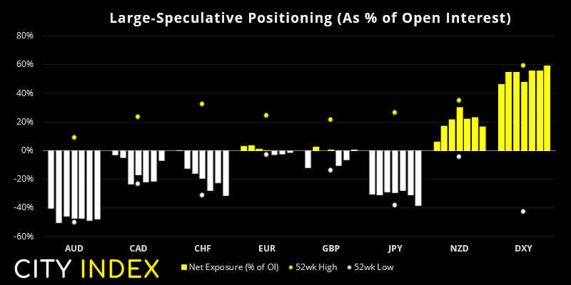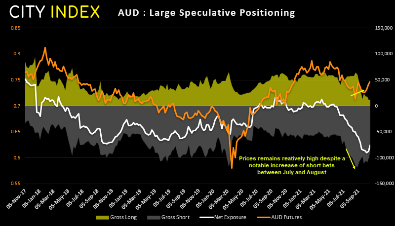 - 在录得多周净空头持仓后,澳元净空头持仓连续第二周减少。