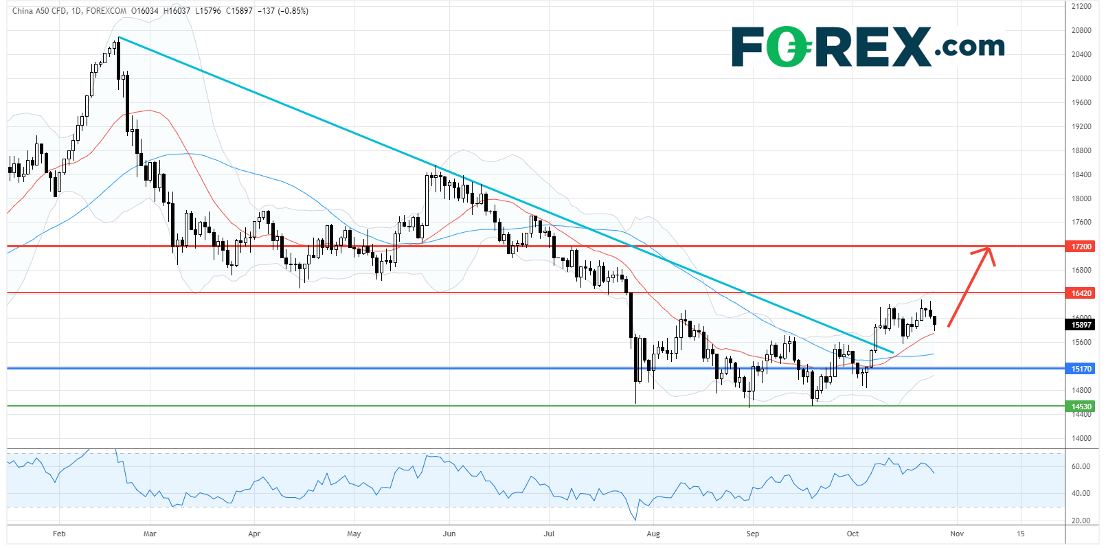 中国A50指数在第3季度处于一个横行整固的状态。目前,市场的主要关注点集中在恒大和高负债的内地房地产企业的债务危机。近日,市场传出中国政府要求恒大地产的主要股东许家印从个人财富中出资以缓解集团的财困。