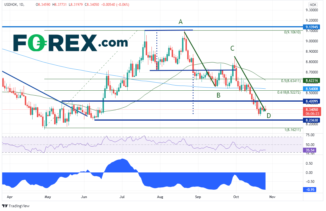 8月中旬以来油价始终单边走高。美元/加元和美元/挪威克朗都与油价存在高度负相关联系。所以,如果油价继续上涨,没有机会进入期货市场的外汇交易者可以改用美元/加元和美元/挪威克朗的日图走势交易原油。