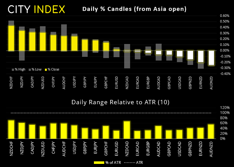 尽管过去48小时中国新发数据喜忧参半,但隔夜波动性受抑。不过,英镑/美元在周五收于其200天均线下方后,值得重点关注。假设货币对已经见顶,值得注意的是,上次见顶是在30天之前 (而上一次峰谷间隔为33天)。