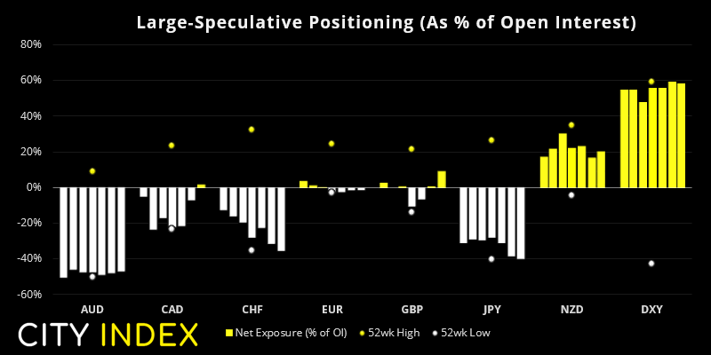 - 交易员连续第四周增加对黄金期货的净多头敞口,目前情绪最为看涨。
