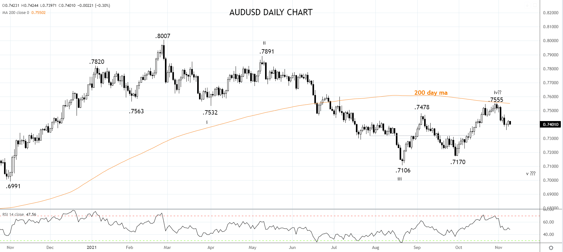 只要澳元/美元仍低于近期波段高点和200天均线0.7555,预计汇价将进一步向支撑位0.7320下探,中期可能跌向0.7100区域。