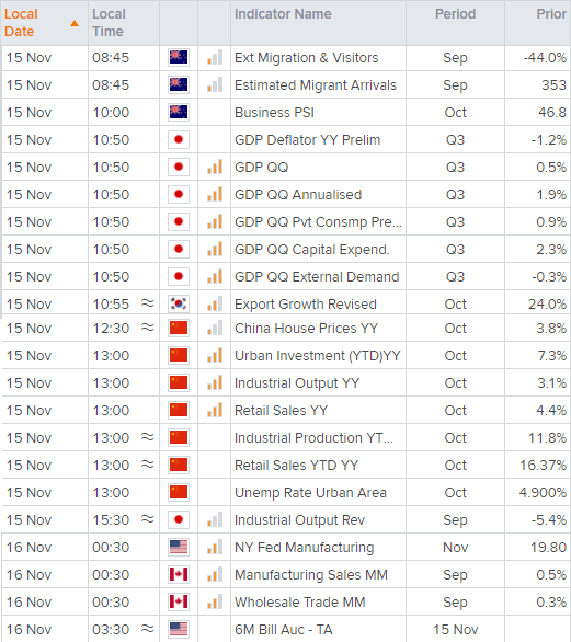 中国将在AEDT时间12:30公布住房价格指数报告,我们怀疑其受到了房地产市场打压措施的拖累。在7月于4.9%触顶后的四个月里,房价涨幅都非常接近,报在3.8%。住房价格指数报告公布后的30分钟,中国将揭晓城镇投资、工业增加值、社会消费品零售报告、工业生产和失业率。