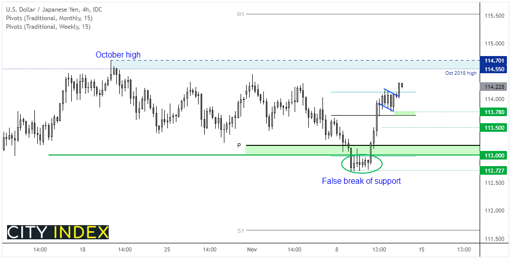 美元/日元强劲反弹至113上方为货币对提供了一波至关重要的动量,这可能标志着其自10月高点以来修正行情结束。看涨势头总体仍然强劲,汇价隔夜升穿盘整模式,暗示货币对今天将继续走高。若失守114,则对多头发出警告,跌破114则有望触发反向走势。但只要美债收益率保持坚挺,我们预计将为美元/日元上行提供助力。