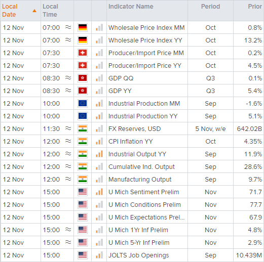 但首先我们将看到德国批发数据(格林威治时间07:00)、瑞士生产者价格指数(07:30)、香港GDP(08:30)和欧元区工业生产数据(10:00发)。鉴于美元主导地位和美国通胀关注度,我们预计上述数据今天不会引发任何波动行情。
