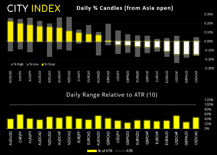 周五,富时100指数一度交投于7400上方,随后以0.5%跌幅回吐周四大部涨幅。疫情后高点一线也因此构筑乌云反转形态。鉴于近期强劲表现,或许富时指数是时候回调了。7330高点或为今天的关键,并可帮助交易员创建日内看法。若守住,可能吸引低吸买盘回场,若告破,或带动新一轮推低。