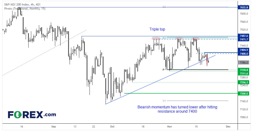 ASX 200挣扎于7400