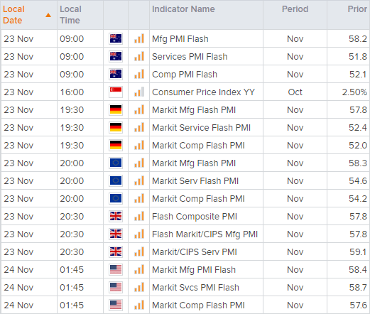 Markit Economics公布其亚洲、欧洲和美国PMI初值(或“预览值”),据其预览报告,本月读数有两件事值得关注,一是欧元区和英国疫情复燃之际服务业是否坚挺,二是美国、日本和澳大利亚是否守住成长势头。