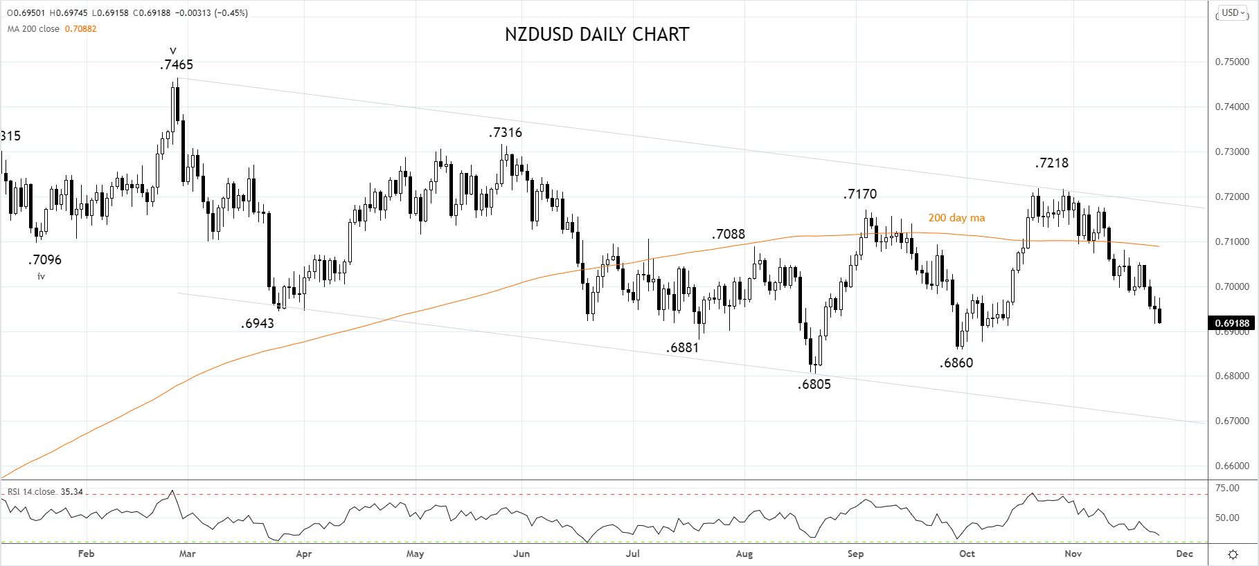 纽元/美元自会前的0.6950探入0.6915低点,然后重回0.6930附近。随着交易员寻求再度测试9月低点0.6860,反弹应受制于阻力位0.6980/00,下看8月低点0.6805。