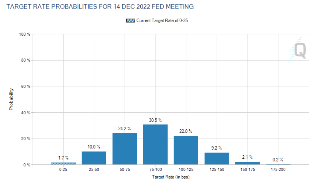 美元多头期待利率“起飞”的大门就此打开。根据CME的FedWatch工具,交易者目前认为,2022年6月中旬美联储会议前至少加息一次的几率为80%。市场现在计入美联储明年年内加息三次或三次以上:
