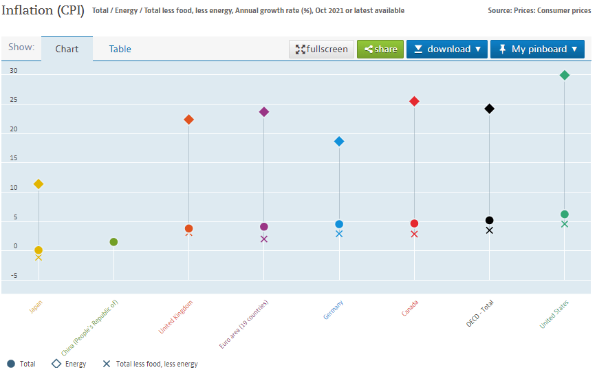 我们先来说大背景:大部分发达国家目前的通胀率达到数十年之最: