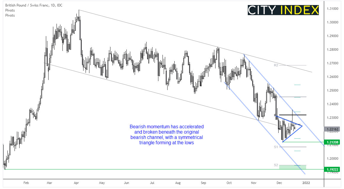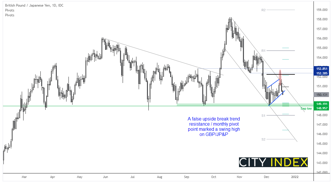 鉴于英国可能面临圣诞节封锁的头条消息以及奥密克戎变种相关关切,要警惕避险环境及英镑/瑞郎和英镑/日元潜在下破。