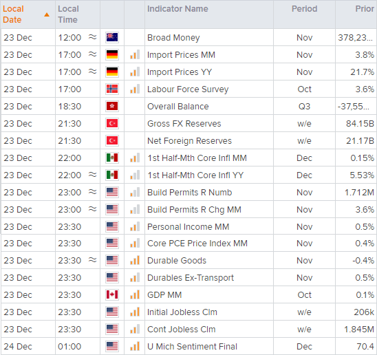 美国所有主要基准股指都收高,其中纳斯达克100指数以1.2%的涨幅领涨(本周迄今斩获2.4%的涨幅),标普500指数和道指分别上涨1%和0.7%。科技股以0.37%的跌幅逆市下跌,但美股在圣诞假期前最后一个完整交易日整体上是走高的。